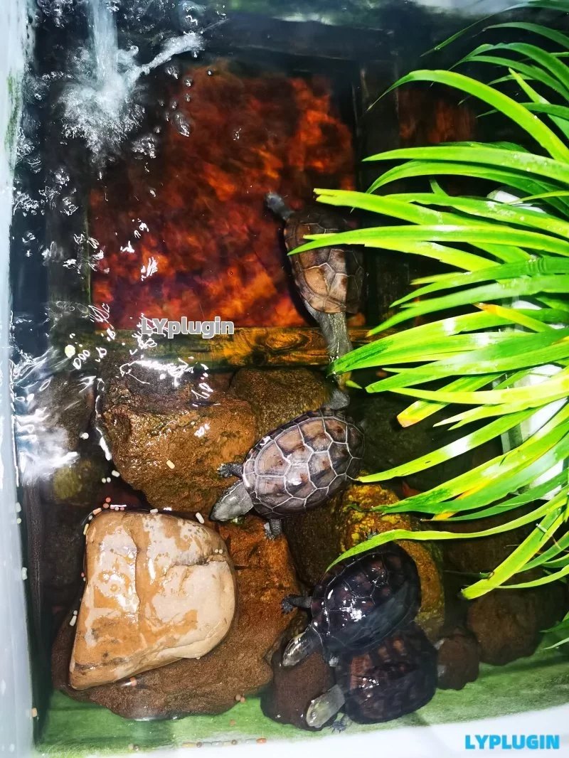 池中放置大小不一的火山石堆砌给黑皮虾躲避与繁殖,鱼池使用小水泵循环抽水经沉淀过滤池净化水质,龟池内用小气泵打氧提高水中的氧气含量。