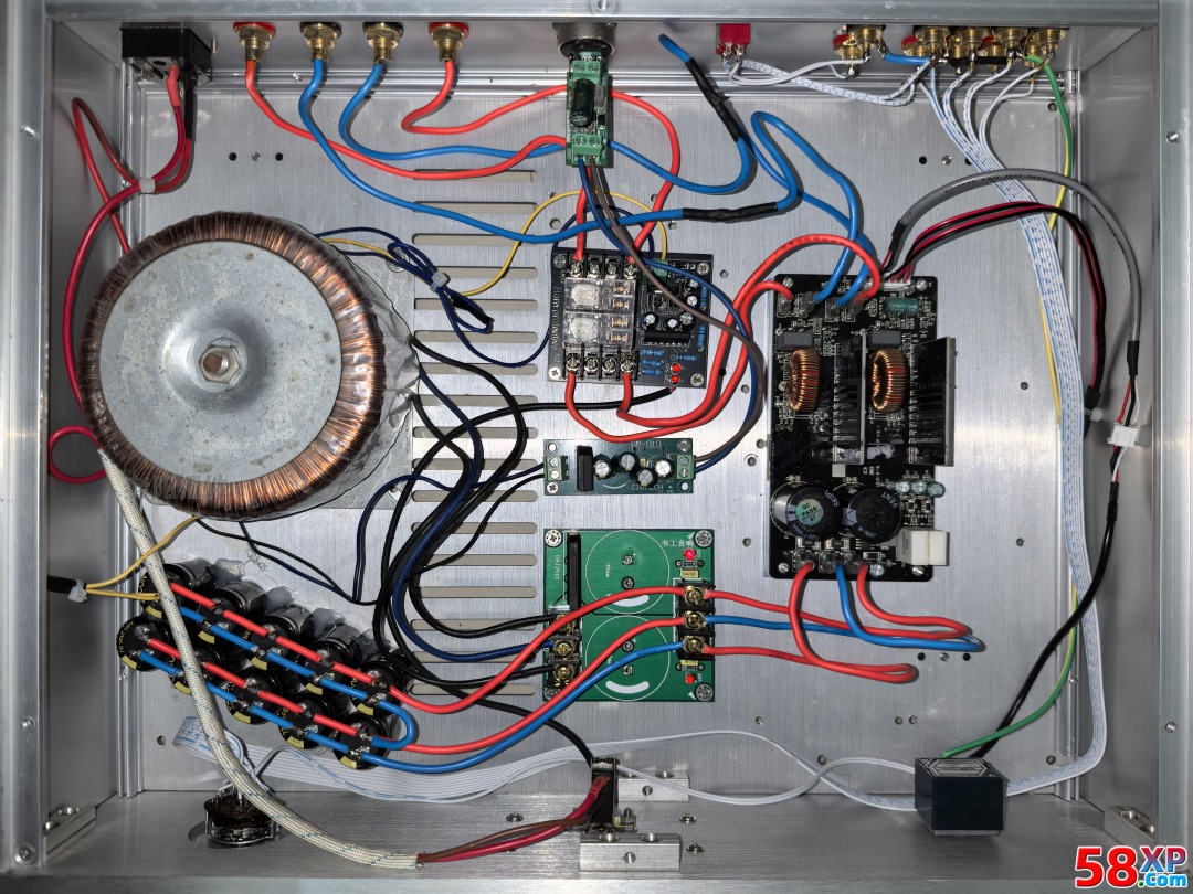 几天后最终改造补图,整流板滤波的二个10000uf电容换为10个2200uf电容。
