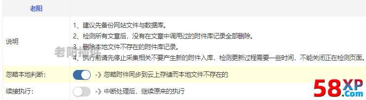 4、执行前请先停止采集相关不要产生新的附件入库,检测更新过程需要一些时间,不能关闭正在检测页面。