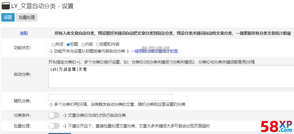 -》多个分类ID用|分隔,没有触发自动分类的文章,随机分类到这里设置的分类