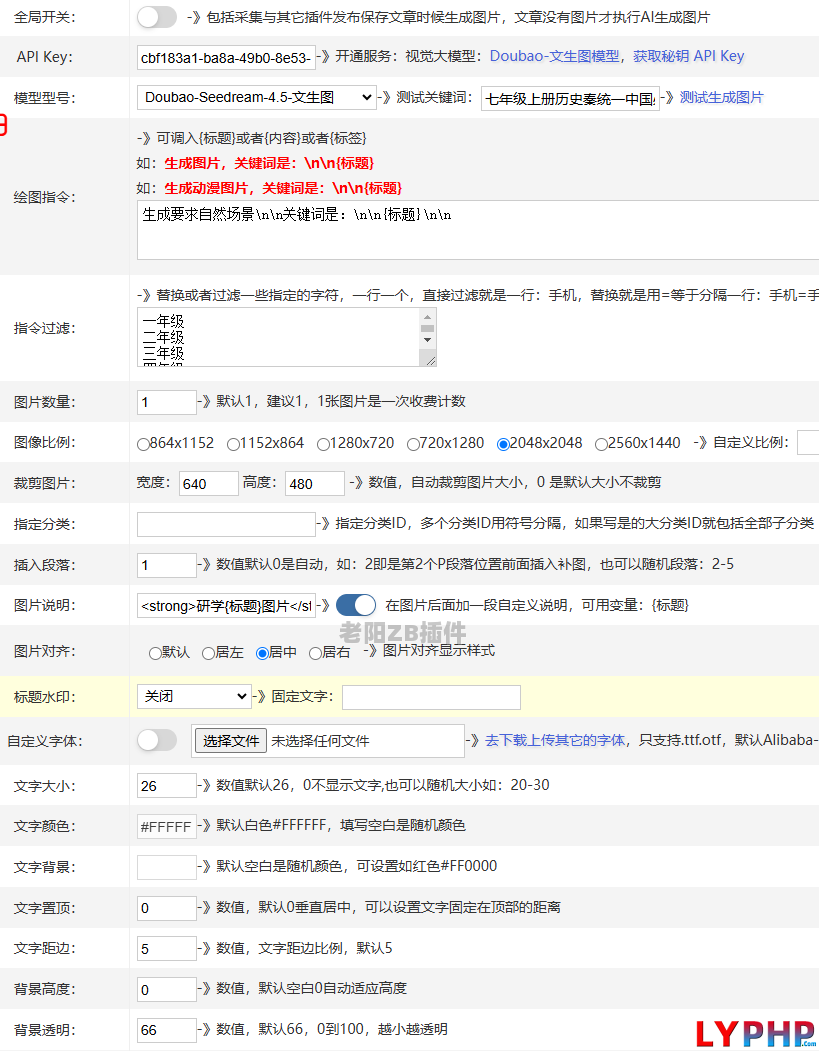 Z-Blog插件ly_doubao_img,豆包AI文生图工具:基于Seedream 4.5模型,自动生成文章配图,支持水印添加和随机背景,立即下载提升创作效率!