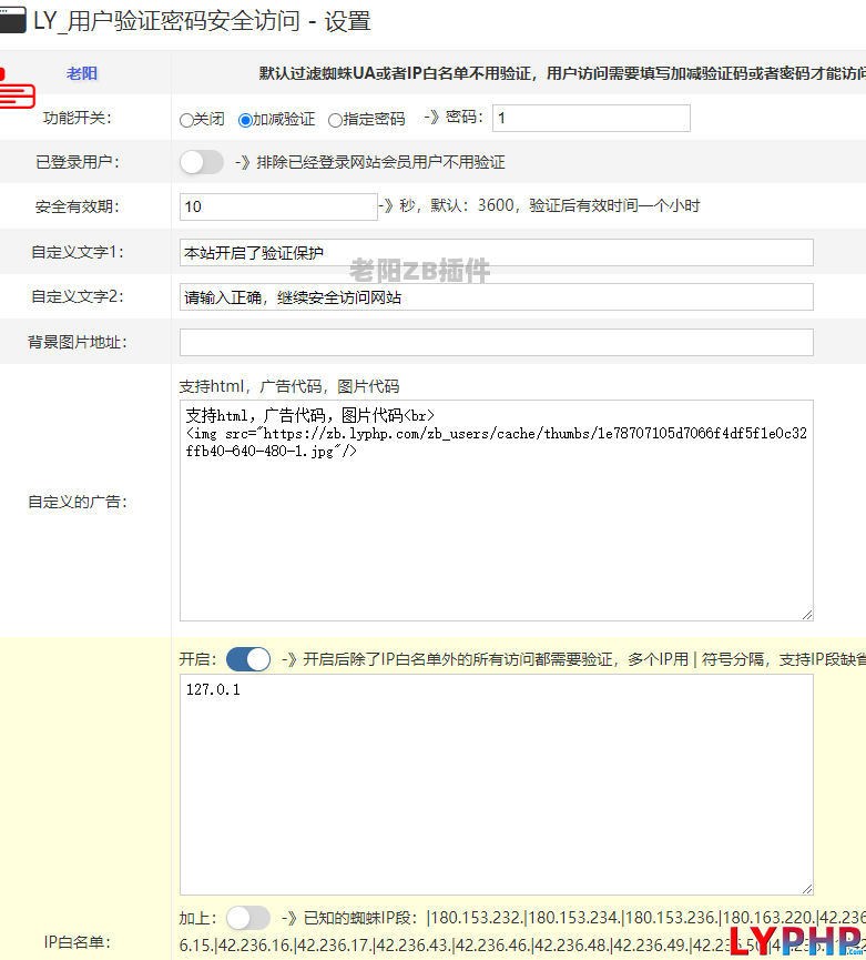 默认过滤蜘蛛UA或者IP白名单不用验证,用户访问需要填写加减验证码或者密码才能访问网站内容,可以设置安全访问的有效时间,拦截验证页可以放广告代码……