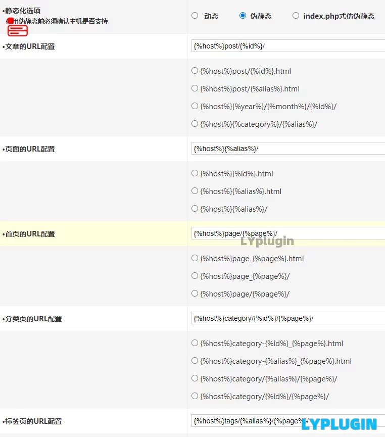 使用本插件需要伪静态中设置后面默认带斜杠的,